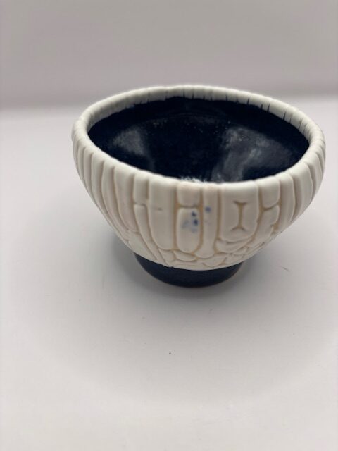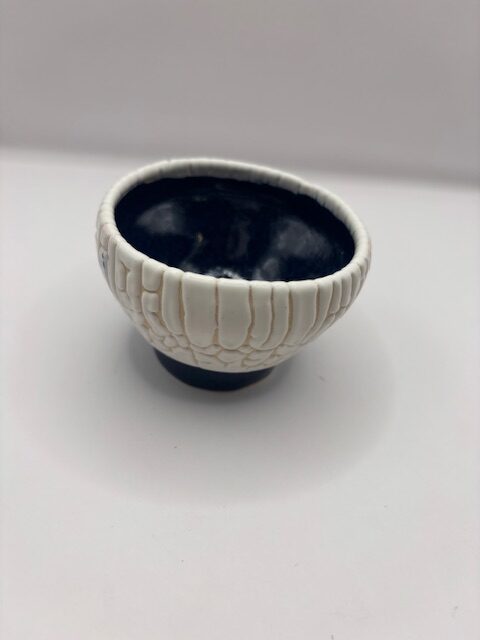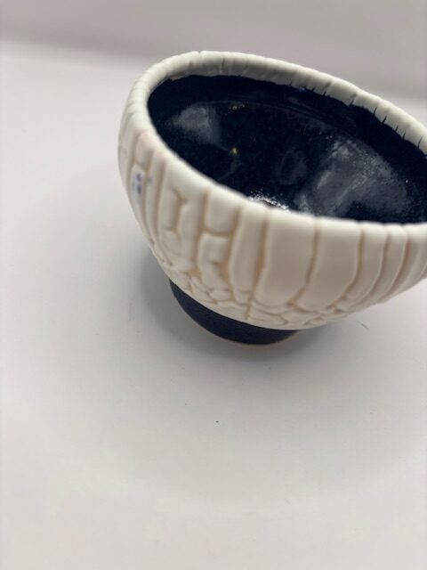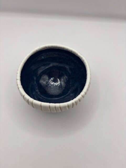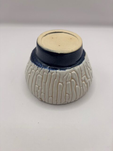 Bol bicolore. Bleu à l'intérieur et blanc effet granulaux à l'extérieur.