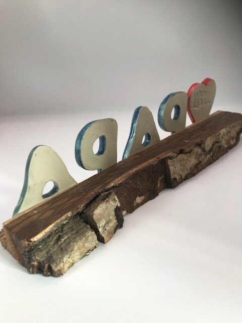 Lettres en grès émaillé sur socle en bois, en partenariat avec L'Atelier autour du Bois à Dijon !