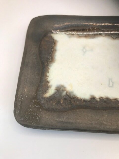 Plat rectangulaire en grès émaillé.