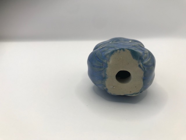 Statuette chouette en grès émaillé. Coloris bleu.
