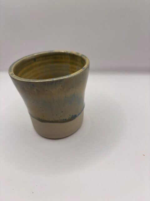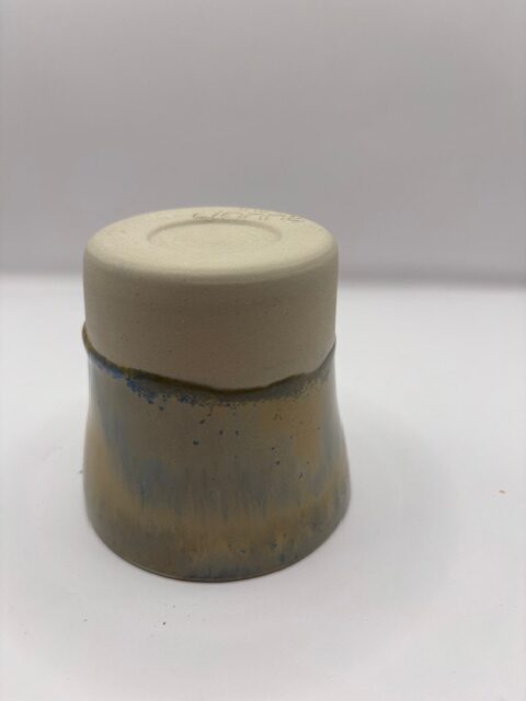 Tasse bleu cristal, colorias vert (extérieur) et bleu (intérieur).