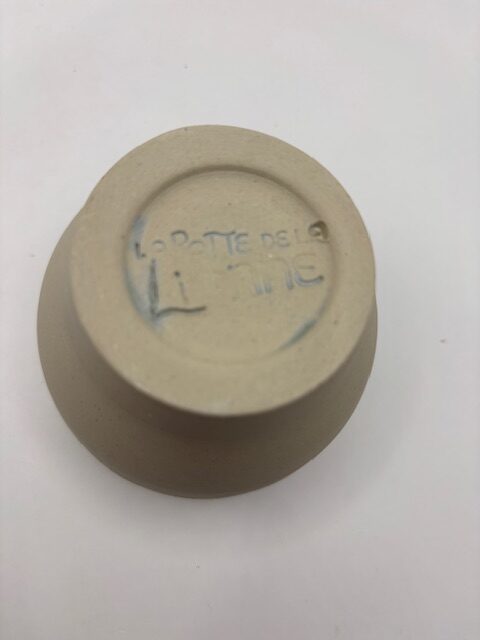 Tasse bleu cristal, coloris vert (extérieur) et bleu (intérieur).