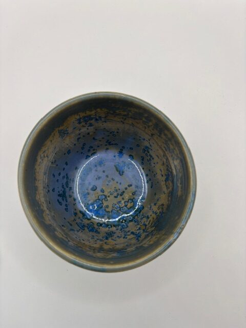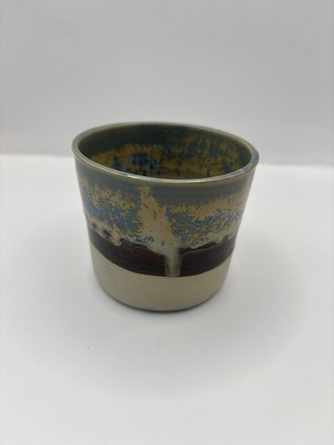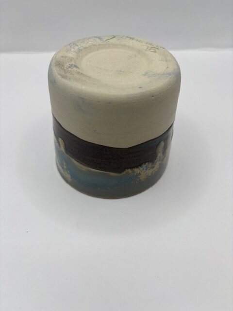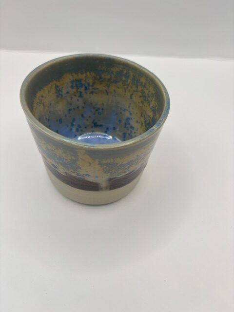 Tasse bleu cristal, coloris vert clair et bleu. Ligne marron.